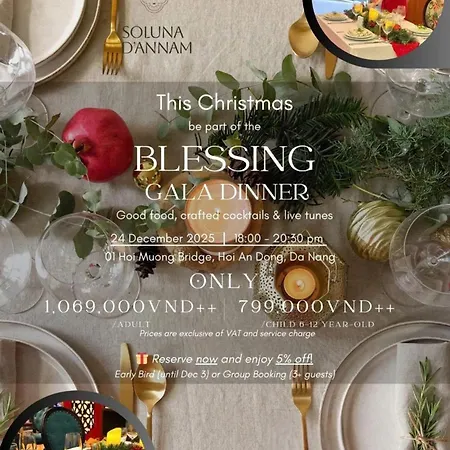 Het stijlvolle Soluna D'Annam - The Art Of Hoi An Relaxation - Formerly Hoi An Babylon Riverside Hotel biedt een restaurant aan en ligt in een shopping gebied van Hội An, ongeveer 1 km verwijderd van de Chùa Cầu en op 18 minuten wandelen van de Stad Hội An. Het 5-sterrenhotel stelt fietsen te huur. Er is wifi in de hele accommodatie voor comfort.